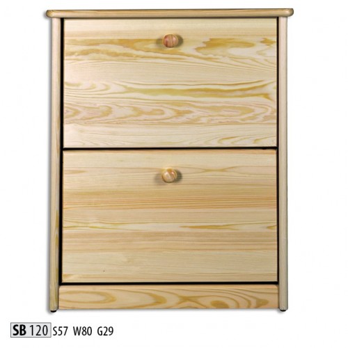 Funkčná skrinka na topánky SB120, vyrobená z masívneho borovicového dreva, dokonale zapadne do vašej chodby. Vnútorná časť skrine má 2 funkčné deliace prvky, v ktorých môžete ľahko skryť svoje topánky. Konštrukcia nábytku je ukončená stabilným vrchom, ktorého povrch môžete tiež použiť.