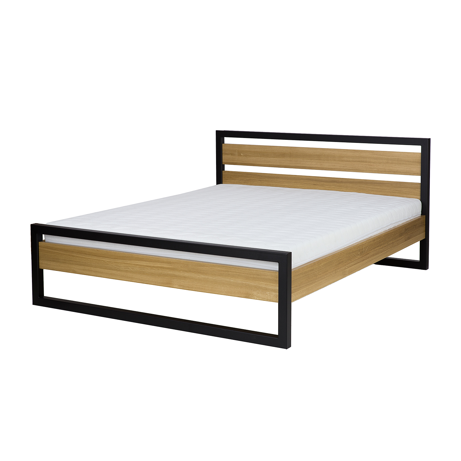 Moderná posteľ vyrobená z dubového dreva v industriálnom štýle. Kombinácia teplého prírodného dreva s tmavým kovom reprezentuje najnovšie trendy. Táto posteľ bude ústredným prvkom každej spálne. Rošt postele a matrac sa predávajú samostatne.