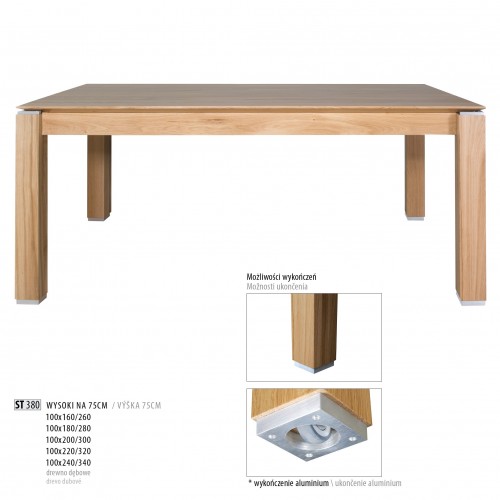 Jedalenský stôl ST380 bol vytvorený pre klasické interiéry. Vyznačuje sa jednoduchosťou a minimalizmom, vďaka čomu sa tiež hodí do moderného interiéru. Unikátne prírodné kúzlo sa pridáva k prírodnému drevu, z ktorého bol vyrobený. Zreteľne viditeľná kresba dubového dreva zahrejú akýkoľvek interiér.