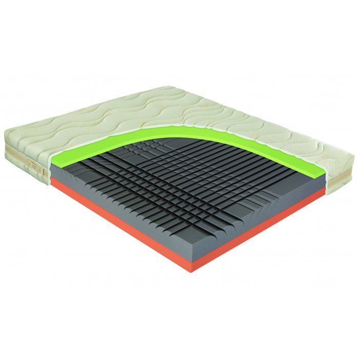 Rozdielna tuhosť je dosiahnutá unikátnym riešením: použitím rôznych typov prerezávania jadra v jednej časti matraca oproti druhej. Takto dosahujeme použitím úplne rovnakých materiálov v celom matraci rozdielnu tuhosť jednej polovice matraca voči druhej. Konštrukcia narezania, okrem zabezpečenia rozdielneho komfortu v jednom veľkom jadre, funguje aj v ďalšom smere veľmi zaujímavo a prospešne pre naše telo počas spánku. Jemne naťahuje chrbticu, stavce a uvoľňuje platničky, čo prispieva k zlepšeniu ich regenerácie a výživy. Týmto prierezom je povrch výrazne prevzdušnený, pri spánku vylúčene tekutiny z matraca rýchlo odchadzajú do okolitého prostredia a v matraci sa udržuje suchá klíma- základný predpoklad dlhodobo čistého a antialergického prostredia bez roztočov. Absolútny komfort a prispôsobenie povrchu zabezpečí vrchná vrstva matraca tvorená penou GREENGEL. Stredná časť jadra je z peny NIGHTFLY, vďaka ktorej sa matrac ideálne prispôsobí telu a poskytne chrbtici maximálnu oporu, aby bola podopretá v optimálnej polohe počas spánku. Spodná časť jadra je zo studenej peny vysokej hustoty vyznačujúcej sa vysokou pružnosťou.