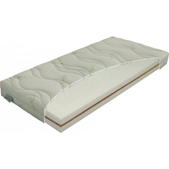 Matracový poťah ALOE-VERA: poťahová látka s výťažkami z tejto rastliny obsahuje prevažne enzýmy, minerálne látky a aminokyseliny, ktoré veľmi pozitívne pôsobia na pokožku a posilňujú relaxačné účinky spánku. Pranie do 60°C.