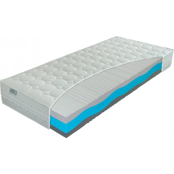 V tomto výnimočnom matraci sú zakomponované zatiaľ najpokrokovejšie materiály, ktoré sa v súčasnej dobe vyvinuli na použitie do matracov. Vysoká vrstva termoregulačnej peny ustráži Vaše lôžka tak, aby sa jeho teplota nachádzala vždy v zóne najvyššieho komfortu. Mikrokapsule striebra nachádzajúce sa v poťahu a v pene ThermoSilver navyše zaručia vysokú hygienu matraca. Tento model matraca je veľmi obľúbený kvôli svojmu jedinečnému komfortu.