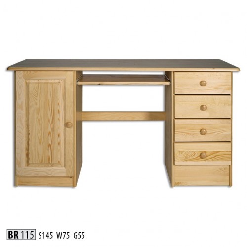 Vyrobený z borovicovéhodreva.Stôl BR115 je návrh pre každého, kto hľadá funkčné a praktické riešenie svojho interiéru. Praktické zásuvky a uzatváratelná polica sú perfektným miestom pre kancelárske drobnosti. Pohodlné používanie a funkčnosť nábytku poskytuje aj posuvnú poličkovú klávesnicu, ktorá tiež uvoľní miesto na stole a poskytuje väčší priestor na prácu.