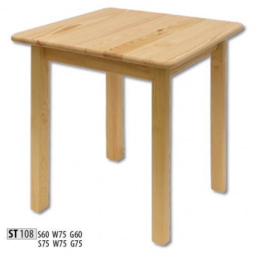Stôl ST108 zo 100% borovicového dreva. Jeho jednoduchý štýl vám dokonale vyhovuje v klasických kuchynských usporiadaniach. Štvorcová,alebo obdĺžniková vrchná doska so zaoblenými rohmi, k dispozícii v dvoch veľkostiach.Pre 4 osoby.