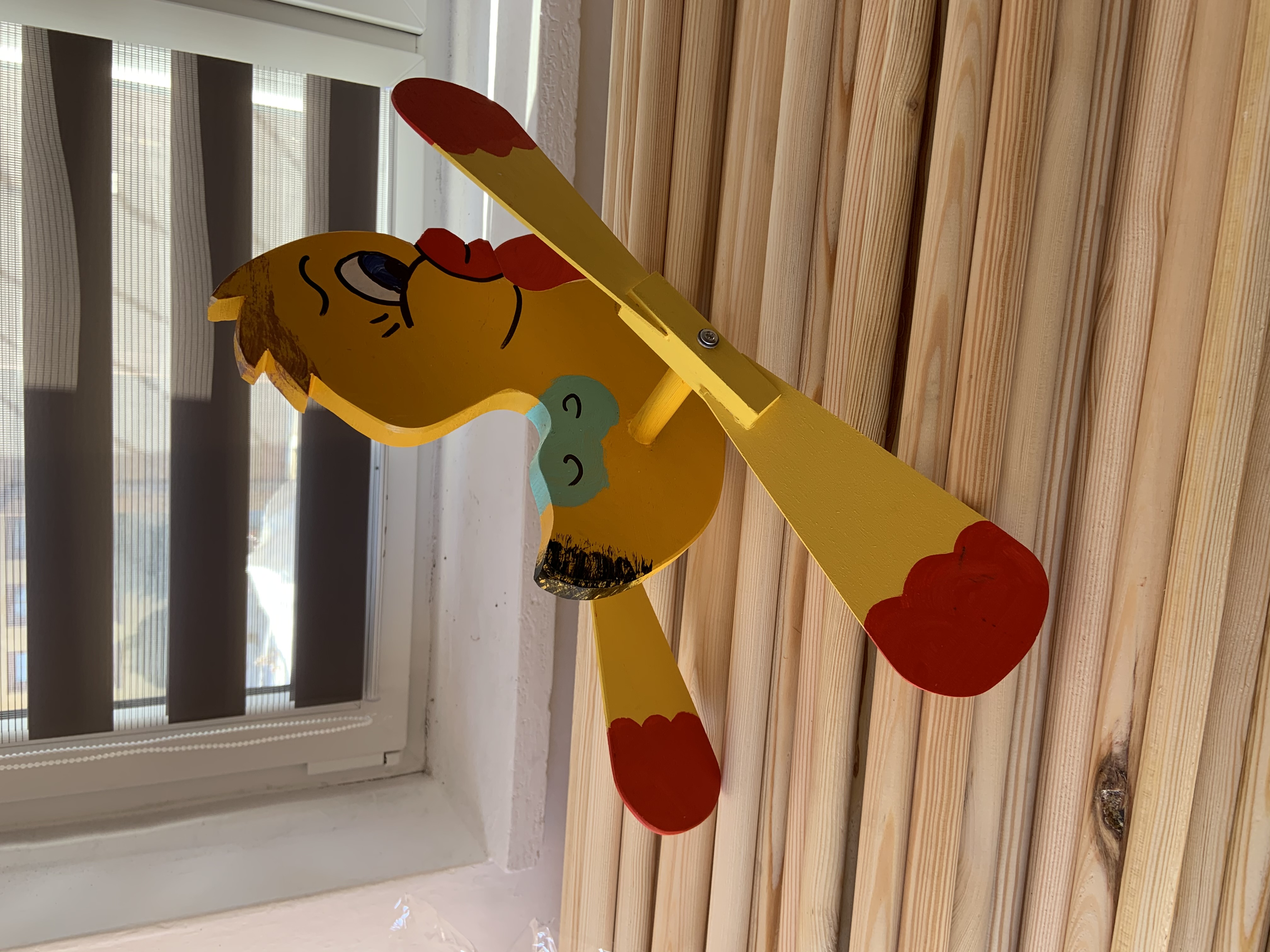 Drevená záhradná dekorácia- vrtulka-domáca výroba jej súčasťou je aj drevená tyč 150 cm