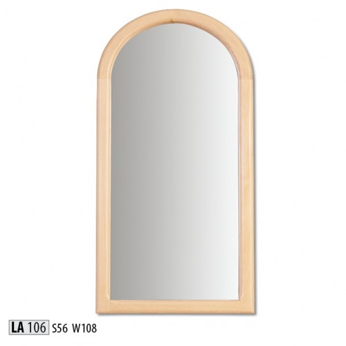 Jednoduchosť a elegancia sú hlavnými výhodami klasického zrkadla LA106, ktorého rámy sú vyrobené z masívneho borovicového dreva. Zaoblená špička dodáva šarm. Zrkadlo je vhodné na zavesenie na stenu v hale, spálni alebo šatni.