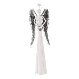 Sametová elegance a jemnost vyjádřená použitím pevného materiálu se perfektně spojuje díky této nádherné kovové sošce anděla s funkcí svícnu v bílé barvě. Může sloužit jako krásná ozdoba sama o sobě, a zároveň je svým provedením a tvarem uzpůsobena pro vložení čajové či LED svíčky. Můžete tak nechat zvýraznit jeho krásu a vytvořit si doma místo, které bude zářit přírodním světlem. Pokud hledáte dokonalou dekoraci, která dovede rychle zaujmout svým půvabem a originalitou, nebo předmět, který vám připomíná důležité hodnoty a poselství, tento kovový anděl se stane nedílnou součástí vašeho interiéru. Nechte se unést jako na andělských křídlech jeho unikátností a vyzdobte jím si své oblíbené místo.