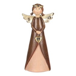 Anděl polyresinový, hnědý se zlatými křídly a srdcem
