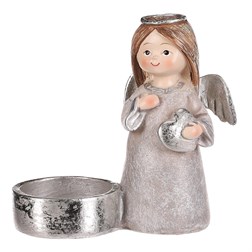 Andílek šedý, stříbrná křídla a srdíčko, polyresin, pro vložení čajové/LED svíčky.