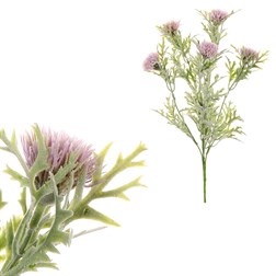 Umělý trs kvetoucího bodláku ve fialové barvě dodá vašim dekoracím výrazný a elegantní prvek. Perfektní pro doplnění květinových a rostlinných výzdob nebo jako samostatný přírodní prvek v interiéru, který vydrží dlouho a nikdy neuvadne.