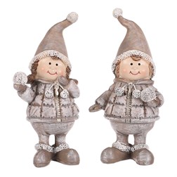 Přineste si do svého domova kouzlo dětské radosti z Vánoc a zimy s našimi polyresinovými figurkami dětí. Tyto roztomilé figurky představují ratolesti v teplém oblečení a každé se sněhovou koulí v ruce, čímž dávají jasně najevo, že jsou připravené si naplno užít venkovních zimních radovánek. V nabídce najdete mix 2 dvou druhů figurek, lišící se svým postojem. Díky jejich barevnému sladění se perfektně hodí pro vánoční výzdobu a jsou ideálními dekoracemi na poličku, stůl, komodu, okenní parapet a další viditelná místa. S jejich roztomilými tvářičkami přinesou do vašeho interiéru kouzlo dětské radosti a nevinnosti. Užijte si pohodovou atmosféru, nejen svátečních dní, s našimi roztomilými figurkami dětí a vyberte jim své ideální místo.