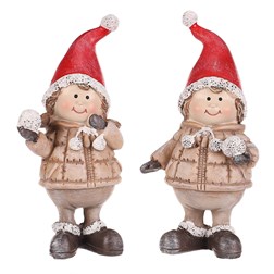 Přineste si do svého domova kouzlo dětské radosti z Vánoc a zimy s našimi polyresinovými figurkami dětí. Tyto roztomilé figurky představují ratolesti v teplém oblečení a každé se sněhovou koulí v ruce, čímž dávají jasně najevo, že jsou připravené si naplno užít venkovních zimních radovánek. V nabídce najdete mix 2 dvou druhů figurek, lišící se svým postojem. Díky jejich barevnému (červenému) sladění se perfektně hodí pro vánoční výzdobu a jsou ideálními dekoracemi na poličku, stůl, komodu, okenní parapet a další viditelná místa. S jejich roztomilými tvářičkami přinesou do vašeho interiéru kouzlo dětské radosti a nevinnosti. Užijte si pohodovou atmosféru, nejen svátečních dní, s našimi roztomilými figurkami dětí a vyberte jim své ideální místo.