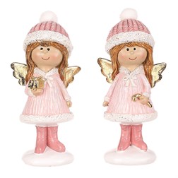 Oživte svůj interiér s našimi polyresinovými figurkami dívek v růžových oblečcích a čepicích. Tyto roztomilé postavičky jsou dokonalým doplňkem vaší vánoční a zimní výzdoby. Mix dvou druhů figur, kdy každá drží v ruce jinou ozdobu, dává možnost výběru. Oba druhy sošek ve stejném stylu, mají malá roztomilá křidélka, která dodávají do vašeho prostoru nádech nebeské lehkosti.
