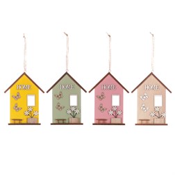 - Domeček dřevěný - na pověšení, mix 4 barev. Cena za 1 ks.
