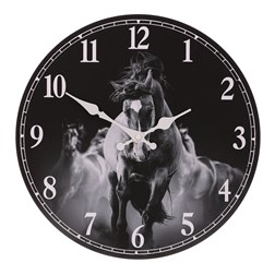 Hodiny nástěnné - koně, MDF, černobílé, 34 cm