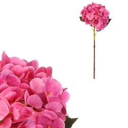 Tmavě růžová hortenzie v řezané podobě na stonku jako umělá varianta, je dokonalou volbou pro vytvoření trvalé a stylové květinové aranže. Tento květ se vyznačuje realistickým vzhledem a detailním zpracováním, které věrohodně připomíná živou rostlinu. Skvěle se hodí do různých dekorací, ať už umístěním v elegantní váze nebo jako součást větších kytic. Bezúdržbová a trvalá, umělá hortenzie přináší do vašeho domova nebo jiného vybraného místa nikdy nekončící krásu a oživení.