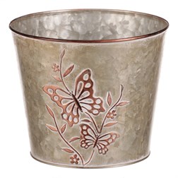 Kovový obal na květiny, design s motýly.