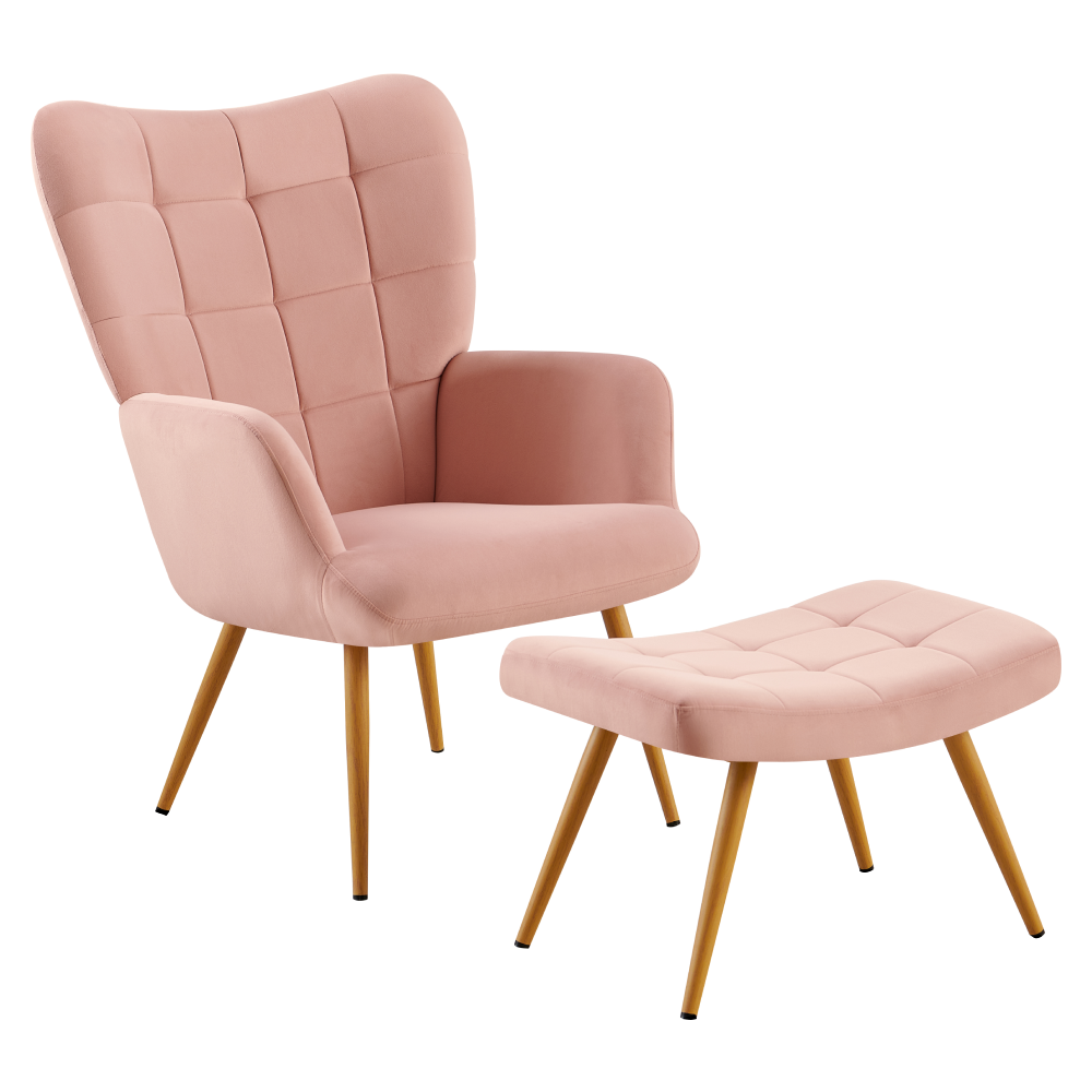 Kreslo s podnožou, ružová Velvet látka/dub, HABEN