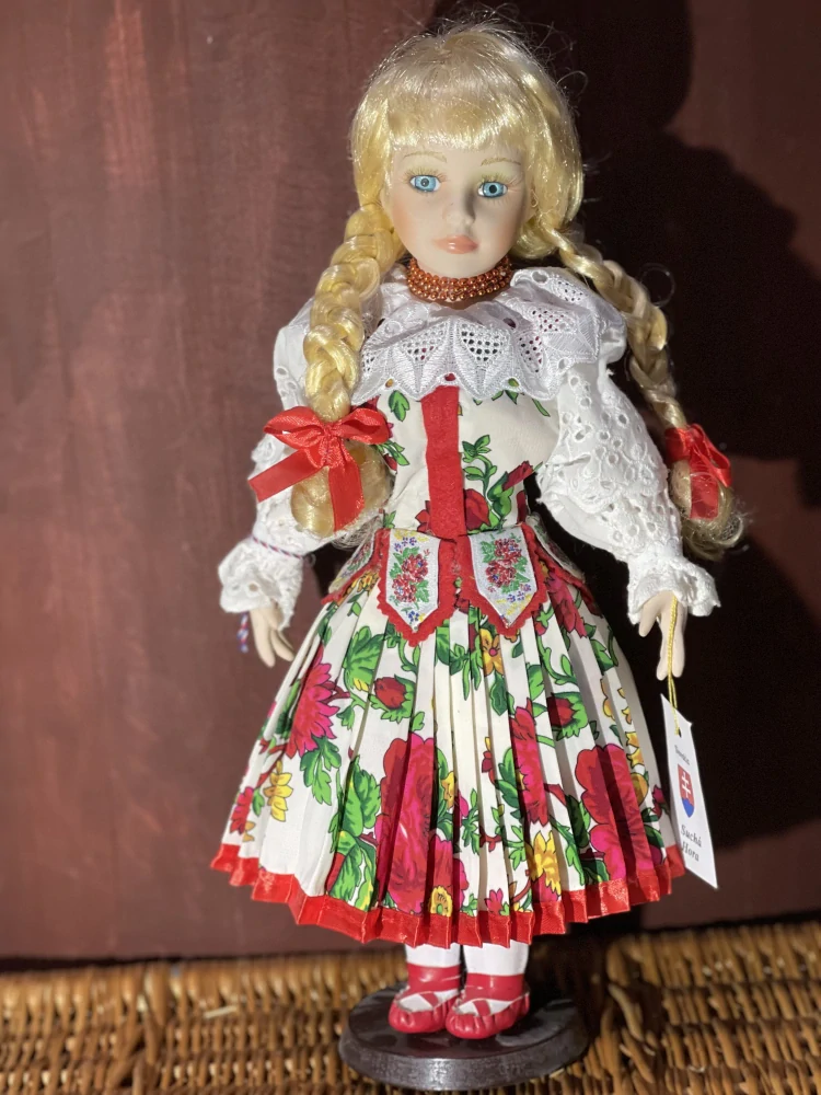Krojovaná bábika vyrobená s láskou a veľmi šikovnými ručičkami,ktorá je odetá do krásy v slovenskom ľudovom kroji . Velmi pekný a originálny suvenír zo slovenska.