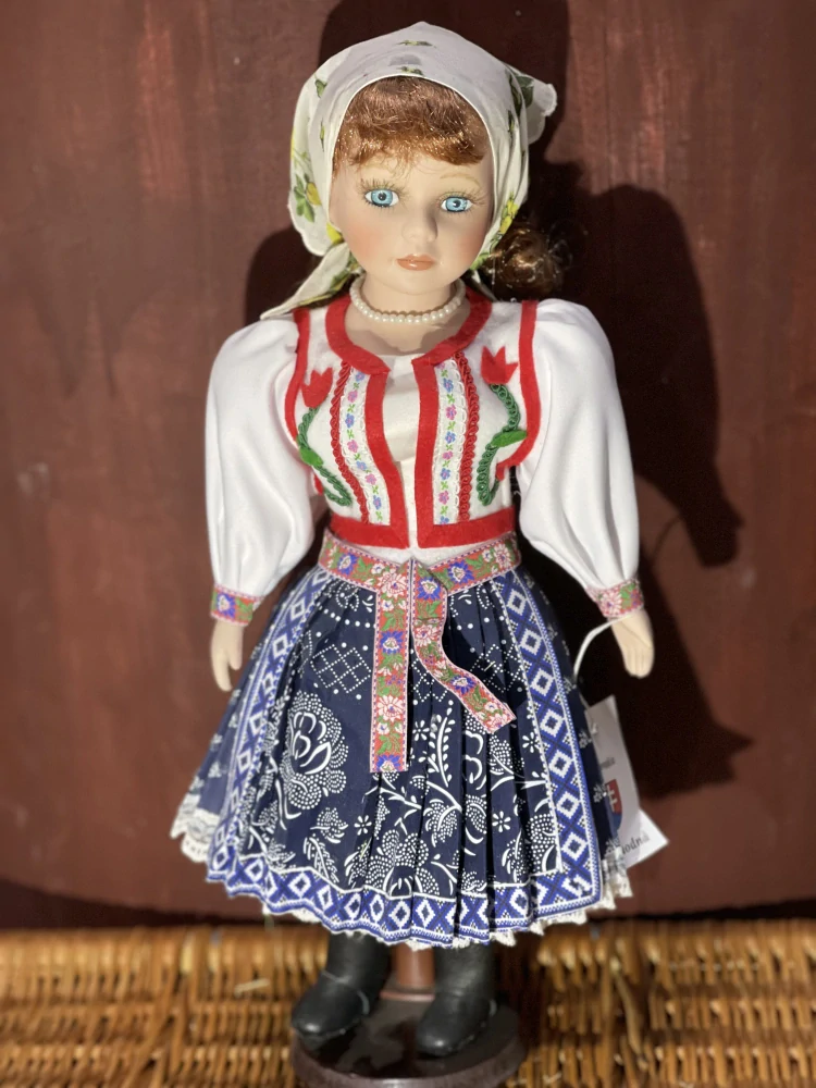 Krojovaná bábika vyrobená s láskou a veľmi šikovnými ručičkami,ktorá je odetá do krásy v slovenskom ľudovom kroji . Velmi pekný a originálny suvenír zo slovenska.