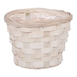 Obal na květiny, bambusové proutí. Bílá barva. Včetně PVC vložky.