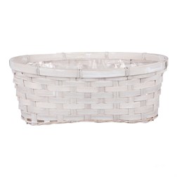 Obal na květiny- oválný truhlík, bambusové proutí. Bílá barva. Včetně igel vlo