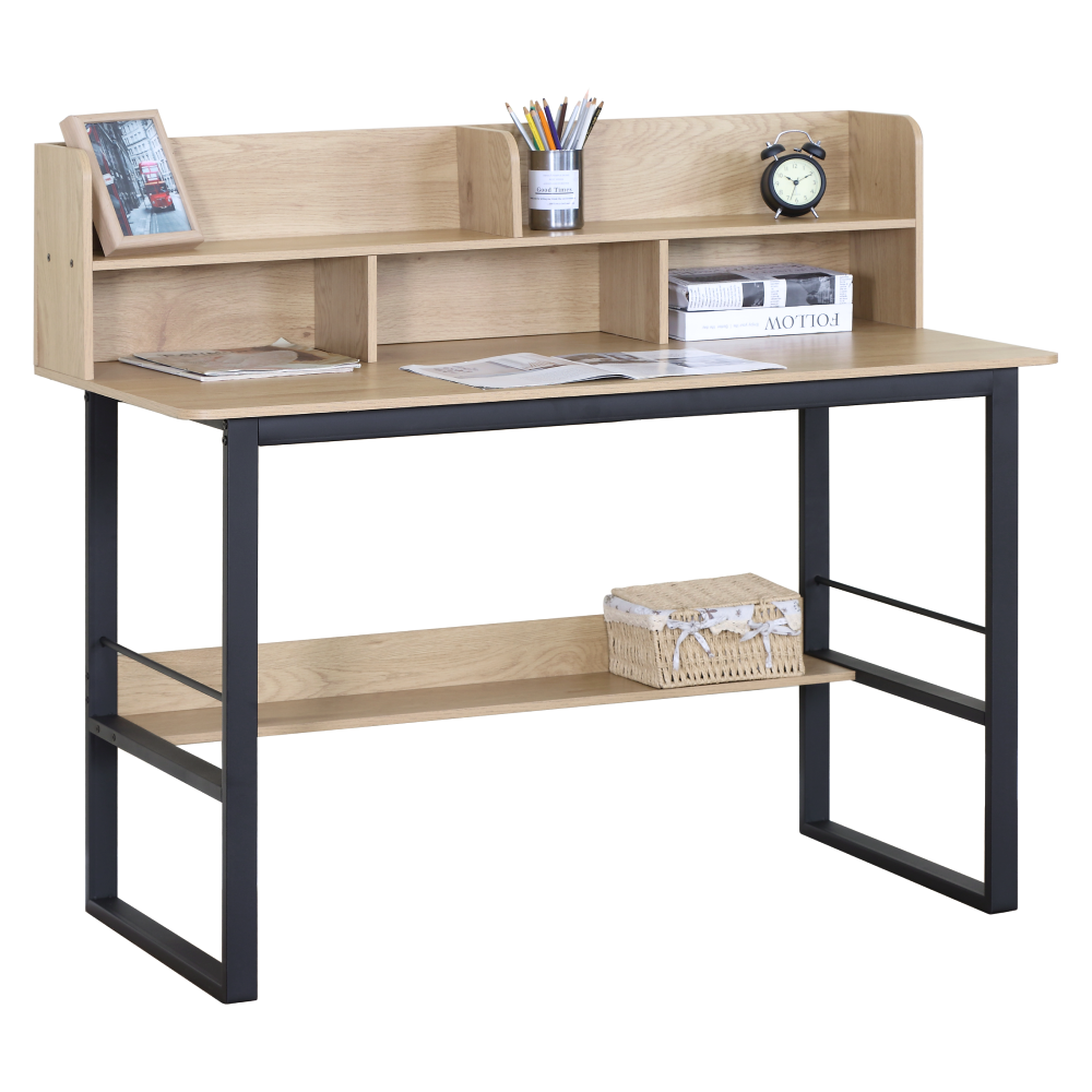 Písací stôl s policou, dub/čierna, TAMIS
