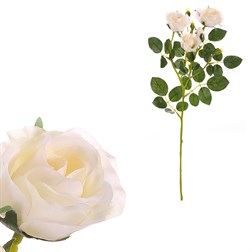 Krémově zbarvená růže s poupaty, jako umělá řezaná květina, přináší trvalou nadčasovou eleganci a romantiku do každého prostoru a pro každou událost. Díky detailnímu zpracování květů i dalších částí rostliny vypadá skutečně jako živá. Budete si tak moci užívat její krásy natrvalo a bez obav, že by vám uvadla.