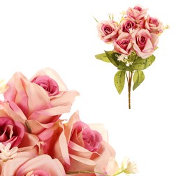 Kytice umělých růží s fialovou barvou květů bude působivou květinovou dekorací. Její krása časem neuvadne a můžete tak využívat tuto umělou květinu opakovaně, nebo ji mít jako trvalou ozdobu. Vynikne sama o sobě v pěkné váze, nebo může být součástí ucelené květinové výzdoby pro různé oslavy, či jiné společenské události. Nemusíte si dělat starosti s údržbou a zaléváním, neboť jako umělá, nepotřebuje žádnou péči, a přitom vypadá fantasticky. Je věrohodnou kopií živé varianty, a tak při letmém pohledu na ní, ji ani nerozeznáte od originálu.