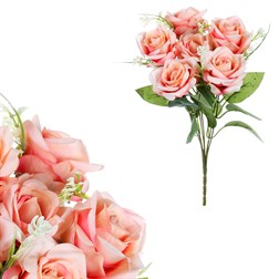 Kytice umělých růží s růžovou barvou květů bude působivou květinovou dekorací. Její krása časem neuvadne a můžete tak využívat tuto umělou květinu opakovaně, nebo ji mít jako trvalou ozdobu. Vynikne sama o sobě v pěkné váze, nebo může být součástí ucelené květinové výzdoby pro různé oslavy, či jiné společenské události. Nemusíte si dělat starosti s údržbou a zaléváním, neboť jako umělá, nepotřebuje žádnou péči, a přitom vypadá fantasticky. Je věrohodnou kopií živé varianty, a tak při letmém pohledu na ní, ji ani nerozeznáte od originálu.