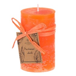 Oranžová svíčka válcovitého tvaru přináší do každého prostoru nejen neodolatelné světlo, ale i jedinečnou atmosféru klidu a elegance. Její bezvonný stoprocentní parafín a jeho množství zaručuje dlouhou dobu hoření, což z ní činí ideálního společníka pro krásné chvíle relaxace a romantiky. Ideální je pro lidi, kteří nesnesou aromatizované produkty, případně jsou na ně alergičtí. S jednobarevným čistým provedením, které je doplněno mašličkou v podobném odstínu, bude hezkým dárkem, a zdrojem nezapomenutelných okamžiků. Při pohledu na plápolající plamen, si snadno zdokonalíte vaše romantické večery a učiníte je ještě krásnějšími.