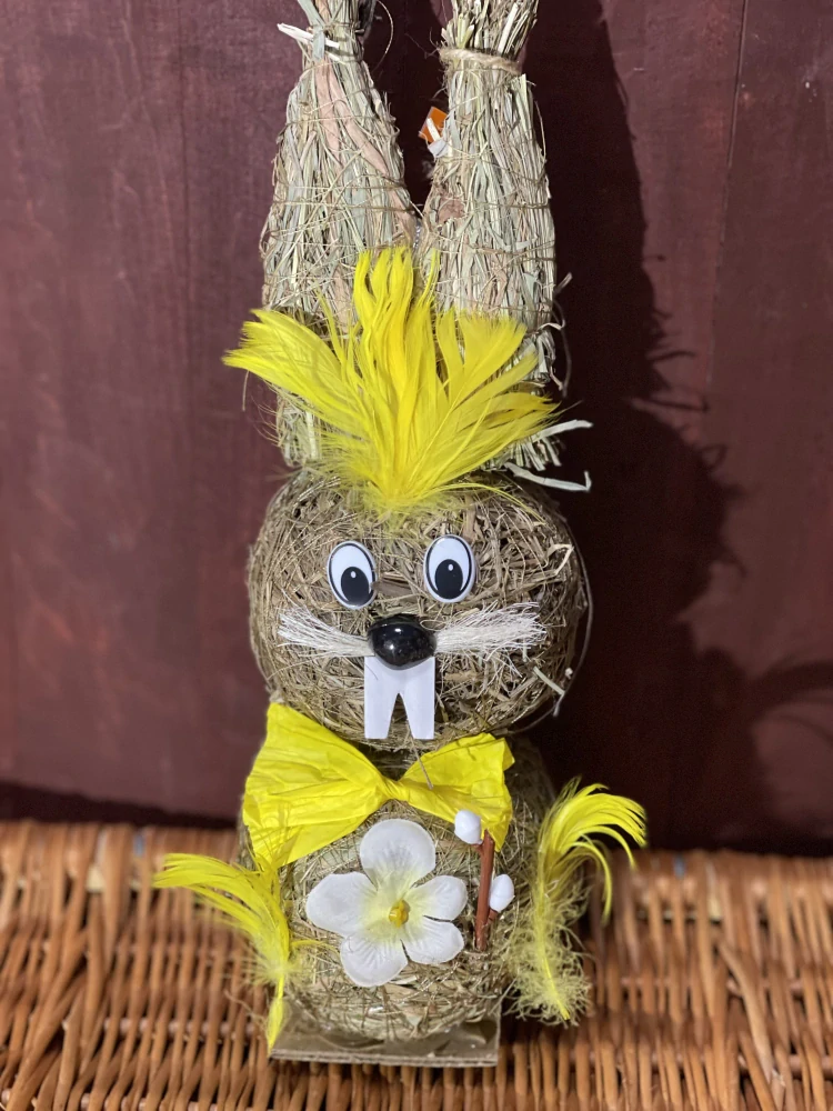 Veľkonočný zajac slamený 32 cm Zajac je ručne vyrobený  zo slamy. Z materiálov, ako je slama, textil a perie. Je vhodný na vnútorné aj vonkajšie zastrešené priestory.Dekorácia na Veľkú noc. Výška-32 cm Šírka-10 cm celý popis