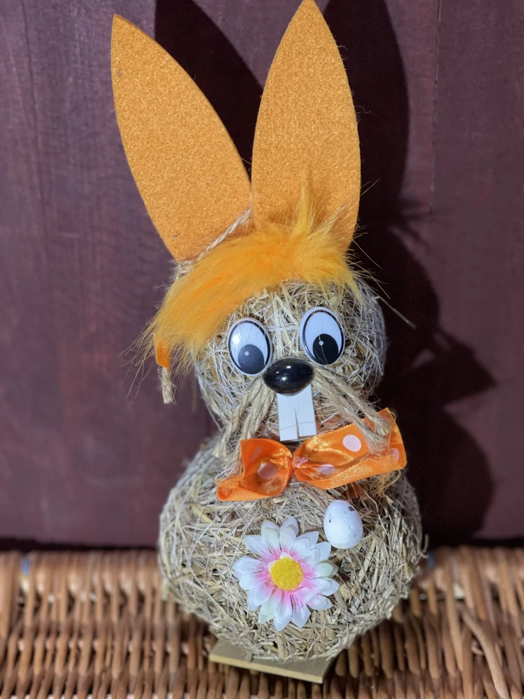 Veľkonočný zajac slamený 27 cm-dekorácia Zajac je ručne vyrobený  zo slamy. Z materiálov, ako je slama, textil a perie. Je vhodný na vnútorné aj vonkajšie zastrešené priestory.Dekorácia na Veľkú noc. Výška-27cm Šírka-10cm celý popis
